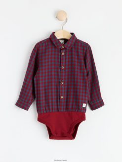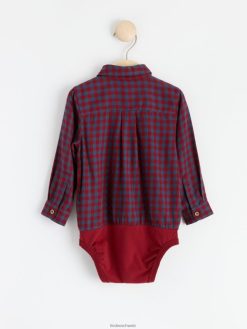 body chemise à carreaux à manches longues rouge poussiéreux foncé Lindex vêtements bébé D44L8F4249