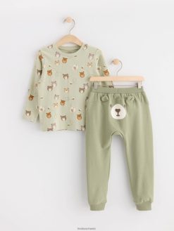 ensemble avec body et pantalon vert légèrement poussiéreux Lindex vêtements bébé D44L8F3968