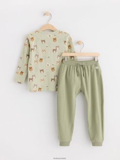 ensemble avec body et pantalon vert légèrement poussiéreux Lindex vêtements bébé D44L8F3968