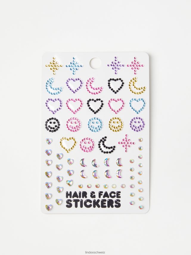 un multipack d’autocollants ludiques de différentes couleurs qui se fixent facilement sur les cheveux et le visage.