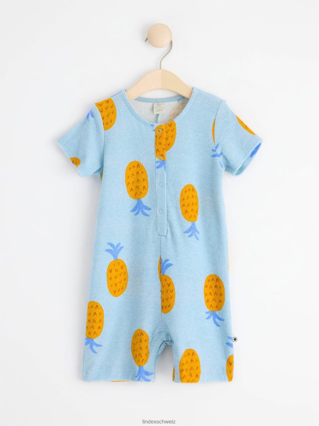 une barboteuse douce en coton éponge confortable avec un imprimé intégral et une fermeture boutonnée sur le devant et à l’entrejambe. durabilité. c’est une pièce certifiée Gots. il est fabriqué à partir de coton biologique et chaque étape de la production a été certifiée de manière indépendante pour garantir qu’elle respecte les exigences sociales et environnementales de Gots (norme mondiale des textiles biologiques).