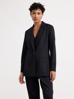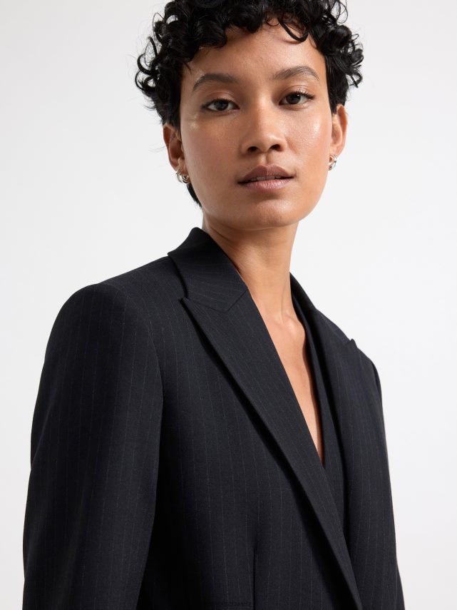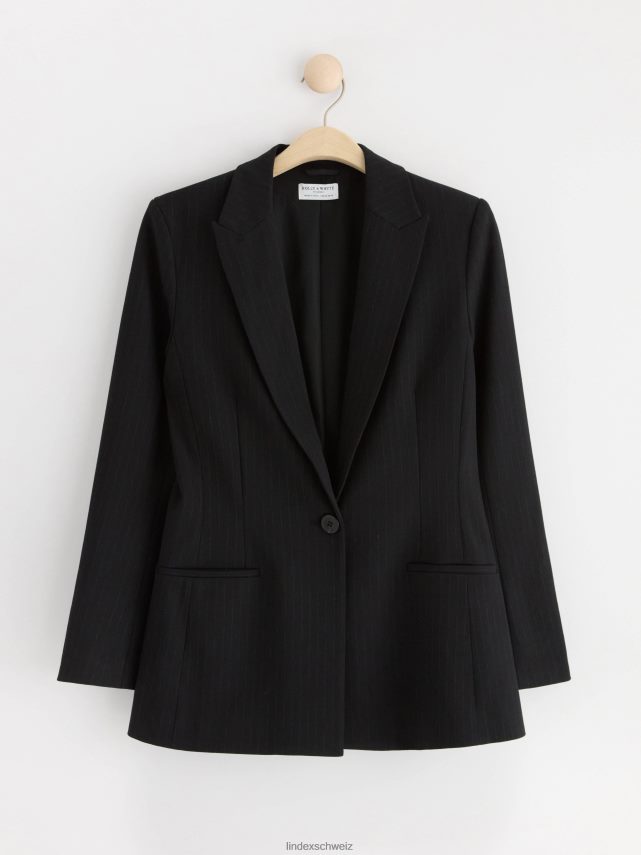 blazer à fines rayures avec manches longues, silhouette ajustée et poches avant.