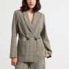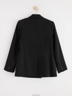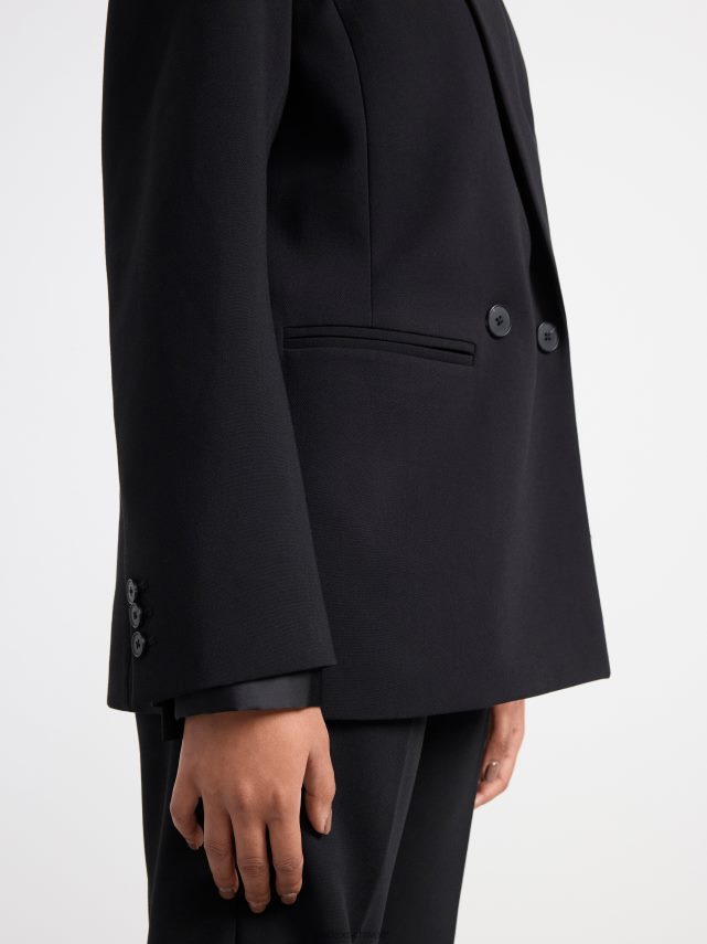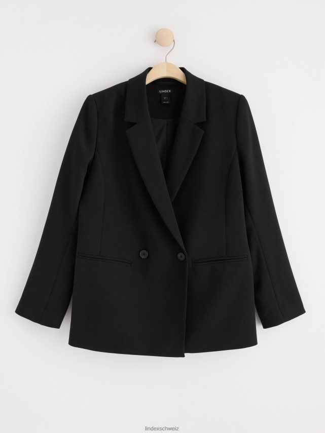 blazer tissé à manches longues, fermeture à double boutonnage et fines épaulettes.
