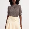 un chemisier élégant dans une matière légère et froissée, avec des manches courtes bouffantes et un col à volants.