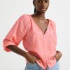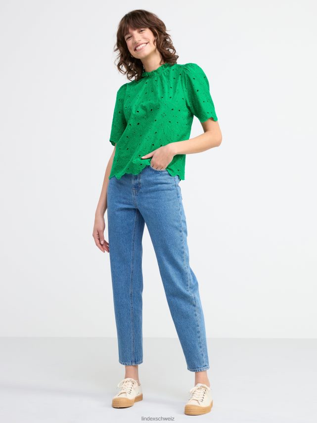 un chemisier en coton élégant avec des manches courtes, un col à volants et de la broderie anglaise partout. matériel. cette pièce est partiellement réalisée en coton biologique. le coton biologique est cultivé sans produits chimiques toxiques ni graines de coton génétiquement modifiées. la culture protège la biodiversité, les écosystèmes et les personnes en utilisant des processus naturels plutôt que des intrants artificiels.