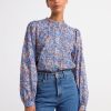 chemisier en coton à manches larges, orné de broderies et de nervures.