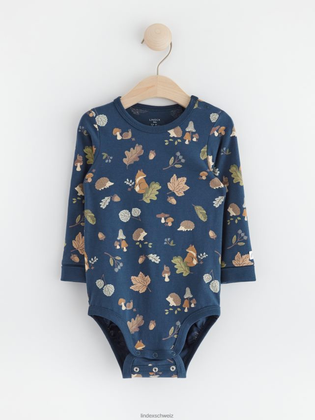 body à manches longues avec motif bleu foncé Lindex vêtements bébé D44L8F3929