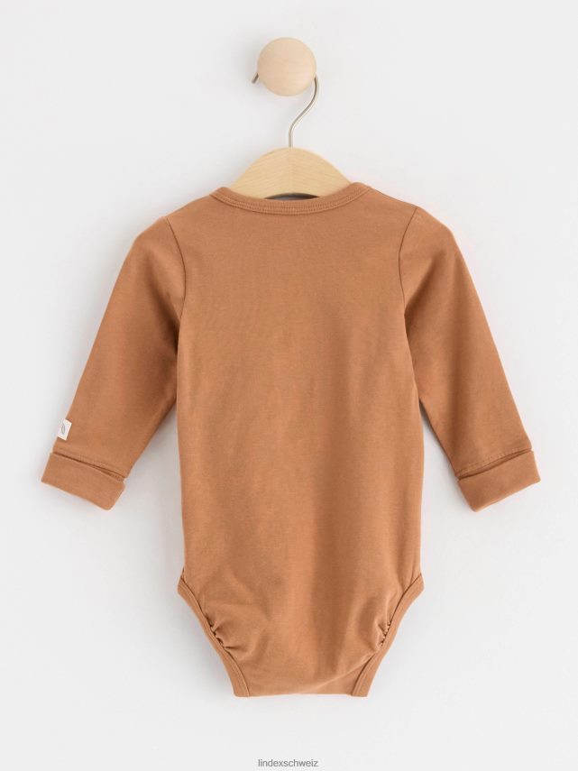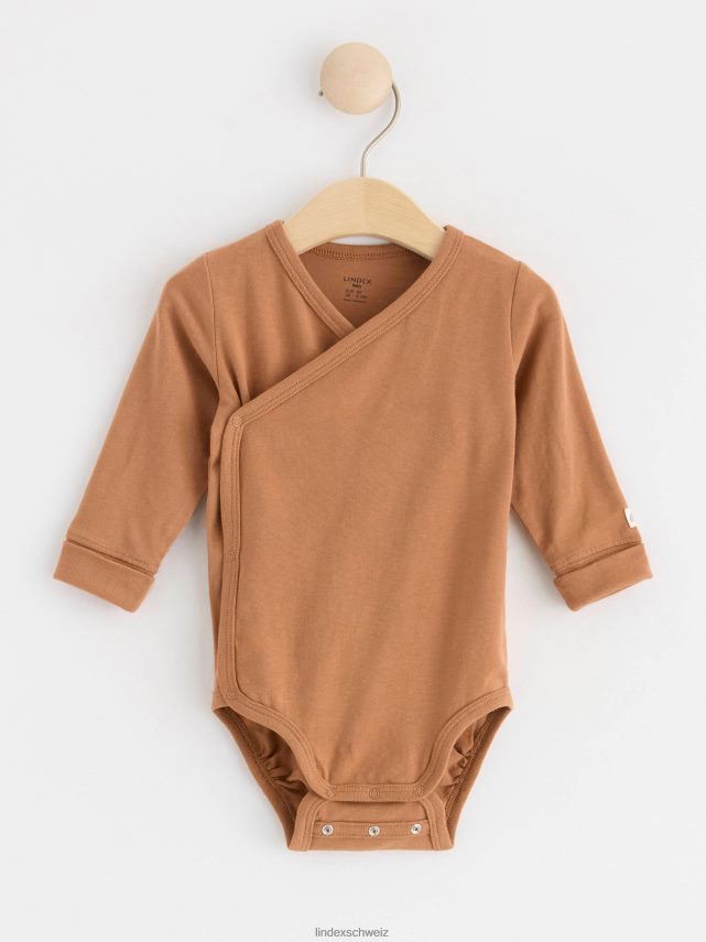 body cache-cœur à manches longues beige poussiéreux foncé Lindex vêtements bébé D44L8F4002