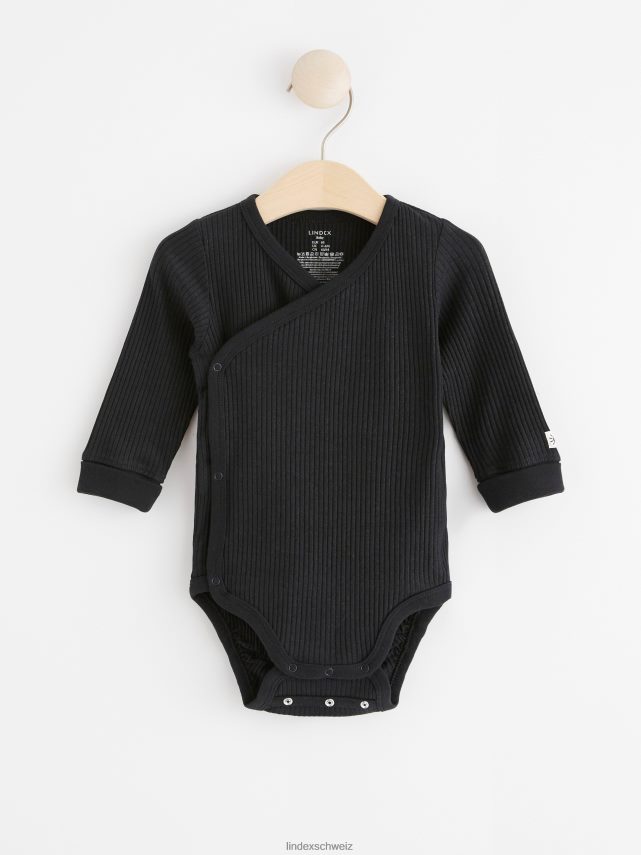 body cache-cœur côtelé à manches longues hors noir Lindex vêtements bébé D44L8F4280