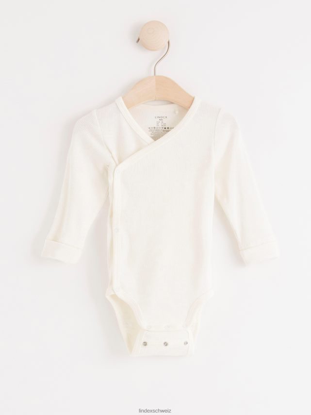 body cache-cœur côtelé blanc légèrement poussiéreux Lindex vêtements bébé D44L8F4185
