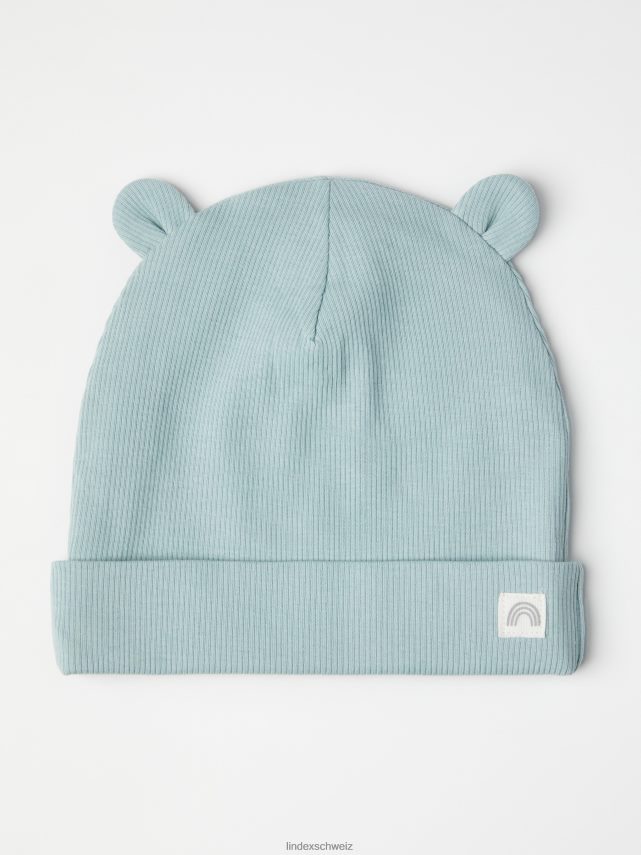 deux jolis bonnets côtelés avec de petites oreilles sur le dessus, un en turquoise poussiéreux et un en rose poussiéreux. matériel. c’est une pièce certifiée Gots. il est fabriqué à partir de coton biologique et chaque étape de la production a été certifiée de manière indépendante pour garantir qu’elle respecte les exigences sociales et environnementales de Gots (norme mondiale des textiles biologiques).