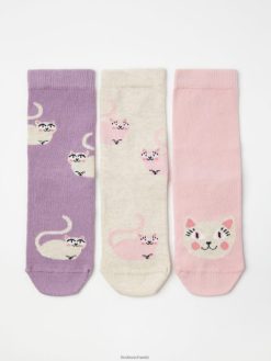 Lot de 3 chaussettes antidérapantes avec chats beige mélangé Lindex accessoires enfants D44L8F3545