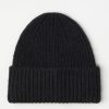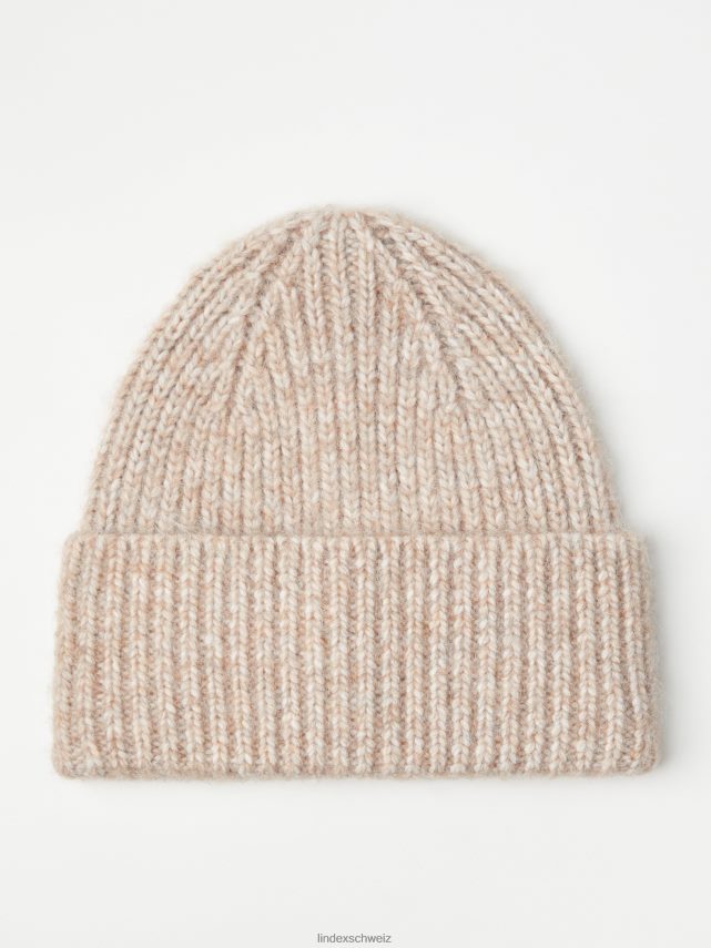 Bonnet doux en tricot côtelé avec un large ourlet plié.