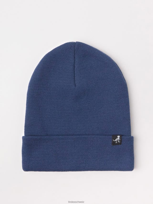 bonnet tricoté avec un bord plié et une étiquette tissée sur le devant, parfait pour la saison froide.