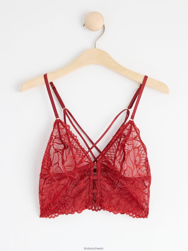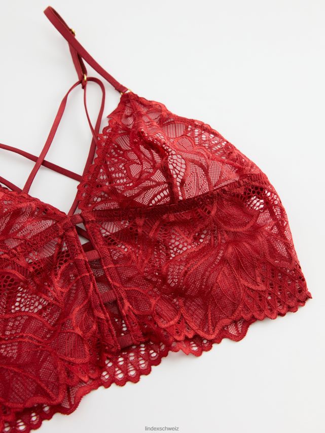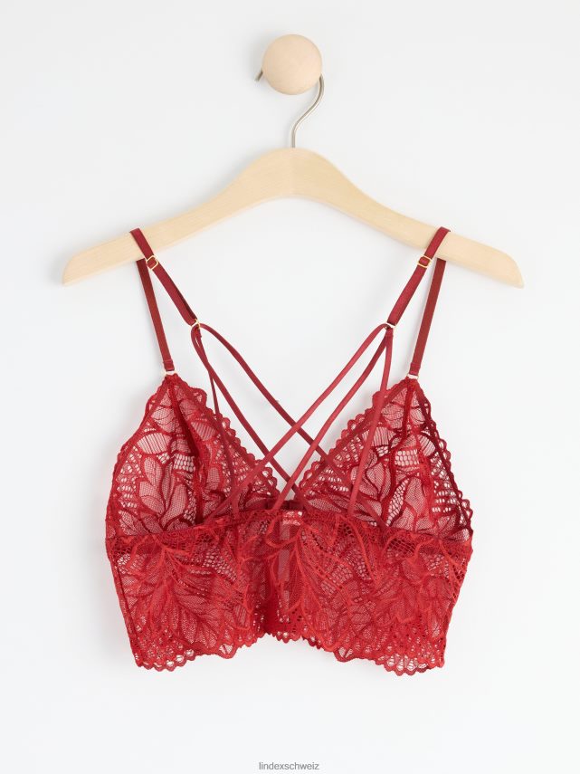 bralette non rembourrée avec dentelle rouge poussiéreux foncé Lindex vêtements femmes D44L8F1610