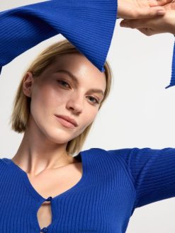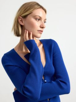 cardigan doux en tricot côtelé avec manches longues et boutons sur le devant.