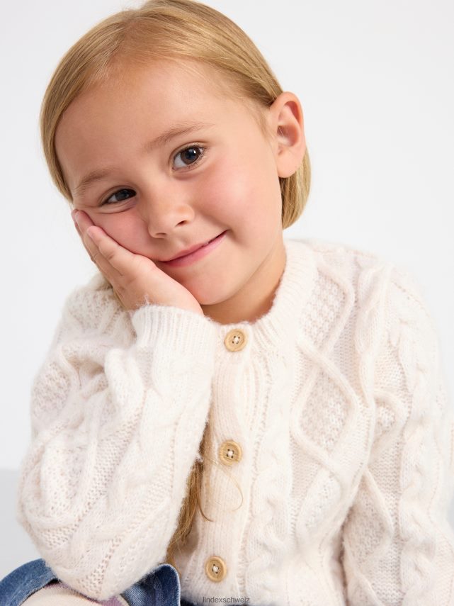 cardigan en tricot torsadé beige clair Lindex vêtements enfants D44L8F3426