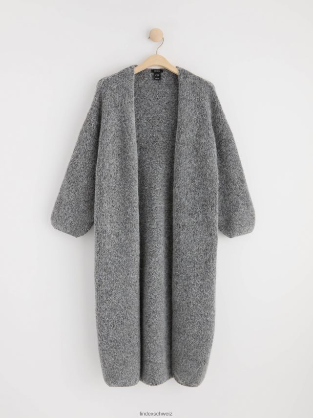 cardigan long et doux en tricot à manches longues et ouvert sur le devant.