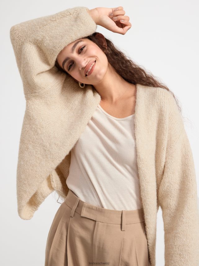 un cardigan tricoté doux et chaud avec des manches larges et un devant ouvert. matériel. cette pièce est partiellement fabriquée en polyester recyclé. Lorsque l’on utilise du polyester recyclé, cela signifie que des matériaux qui ont déjà été produits, comme les bouteilles en PET, ont une autre chance. il est beaucoup plus économe en ressources que la production de nouveaux matériaux, ce qui le rend meilleur pour l’environnement et réduit l’impact climatique.