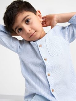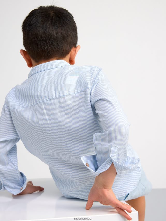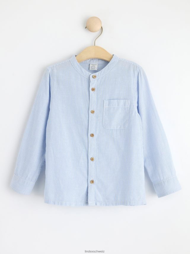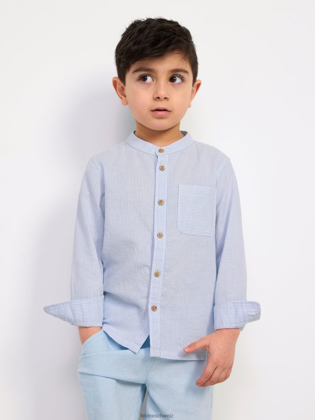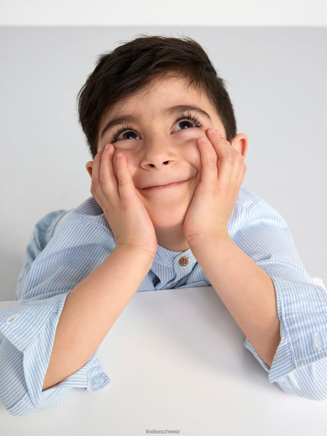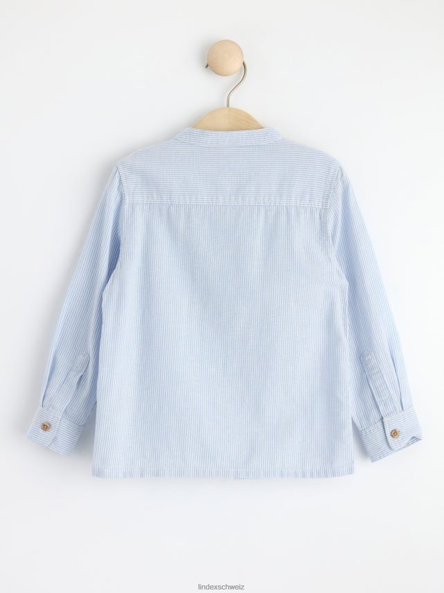 chemise à fines rayures C’est un bleu poussiéreux Lindex vêtements enfants D44L8F3853