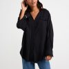 Chemise tissée en coton impeccable avec manches longues bouffantes, silhouette ajustée et fronces sur le devant.