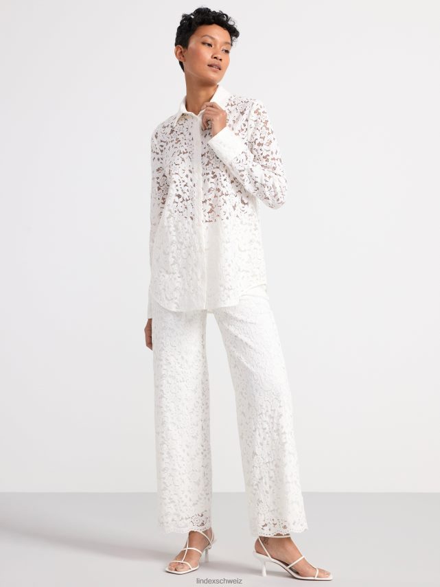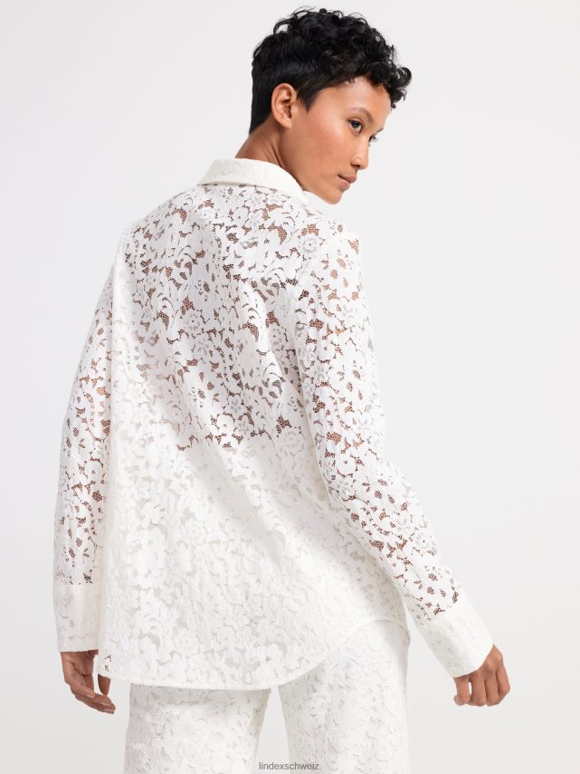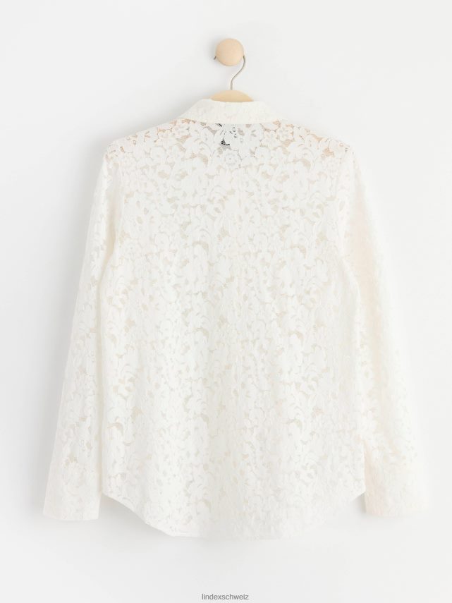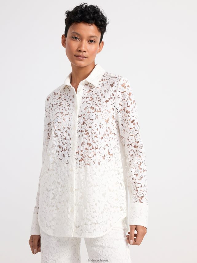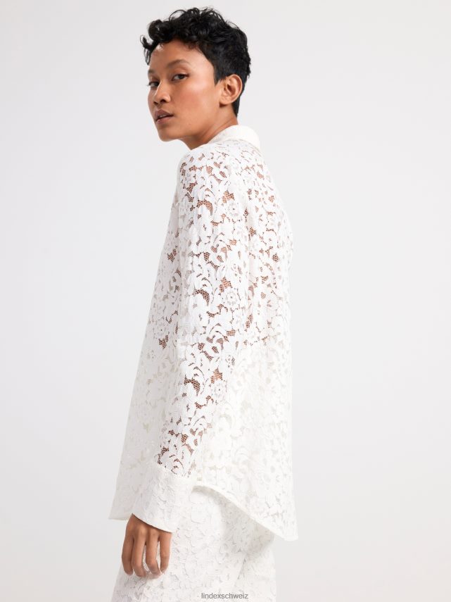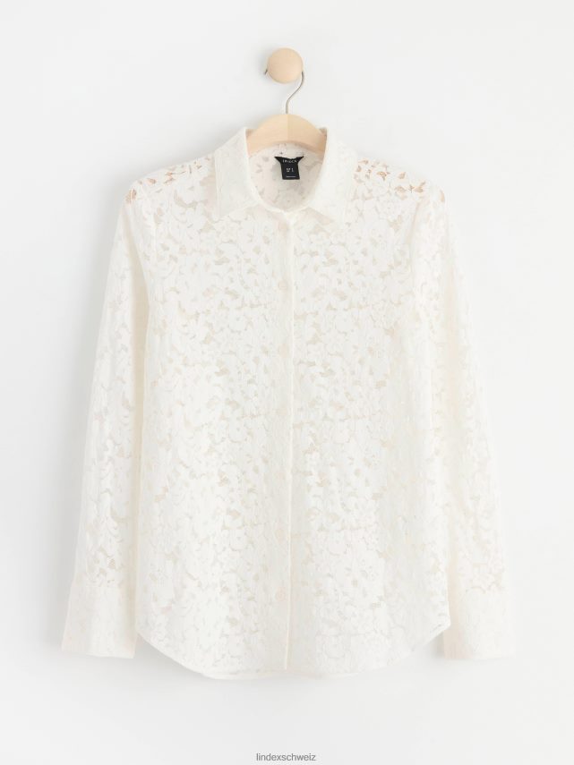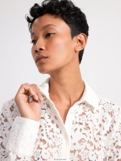 une belle chemise blanche confectionnée en délicate dentelle florale. la chemise n’est pas doublée et est dotée d’un col classique et d’une fermeture boutonnée sur le devant, ainsi que de manches longues avec de larges poignets.