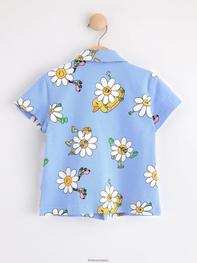 chemise en jersey de coton à manches courtes C’est un bleu poussiéreux Lindex vêtements enfants D44L8F3845