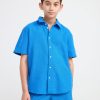 une chemise à manches courtes en lin mélangé avec un imprimé floral intégral.