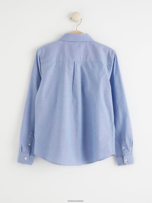 une chemise Oxford bleue classique en coton avec un col boutonné et une poche poitrine.