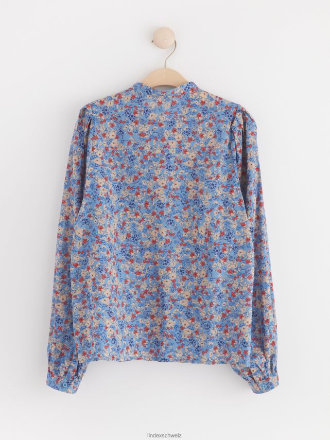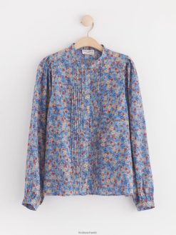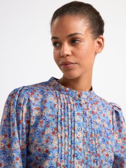un chemisier en coton à manches larges, orné de nervures sur le devant. il est doté d’un imprimé floral intégral.