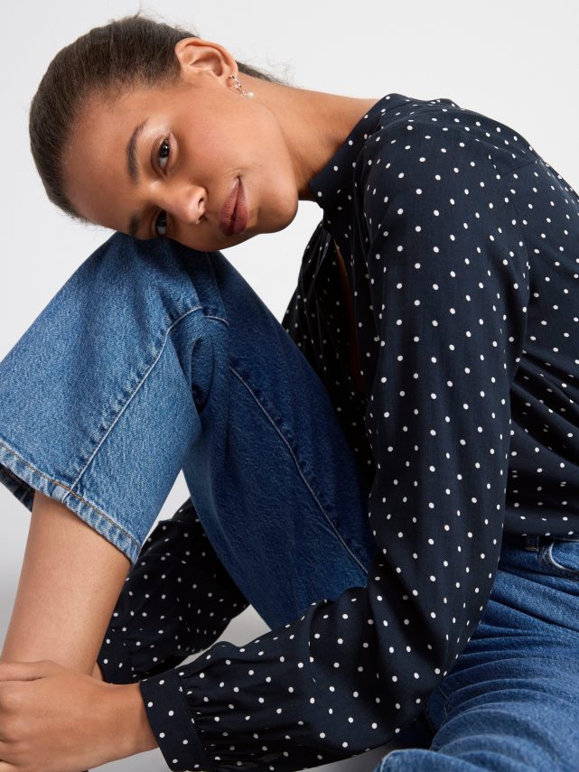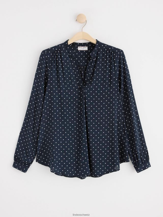 blouse légère et fluide en viscose certifiée avec un col en V et un motif intégral. matériel. cette pièce est fabriquée en écovero Lenzing, une option plus durable par rapport à la viscose conventionnelle. le matériau provient d’une foresterie responsable et est produit avec un impact moindre sur l’environnement.