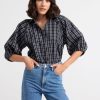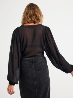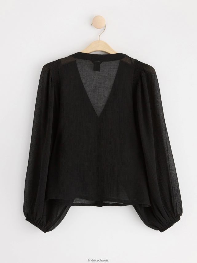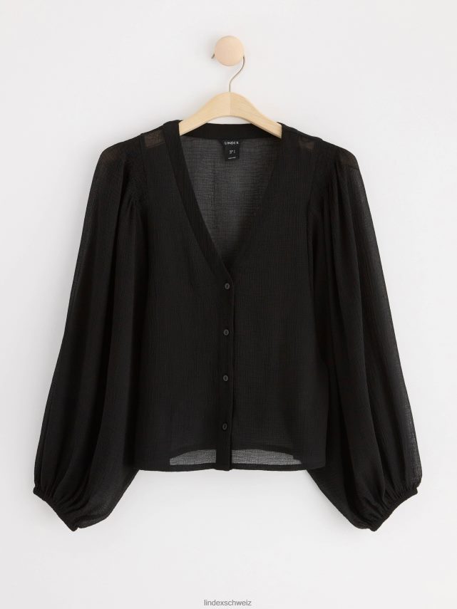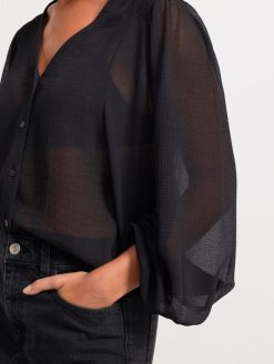 chemisier élégant en mousseline de soie avec coupe droite, manches longues et larges et boutonnage sur le devant.