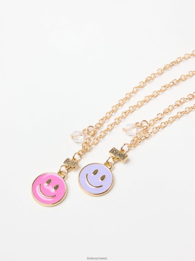 Partagez ce joli collier de meilleurs amis avec votre meilleure amie. composé de deux pendentifs avec des visages souriants sur une chaîne dorée et d’une petite perle sur le côté.