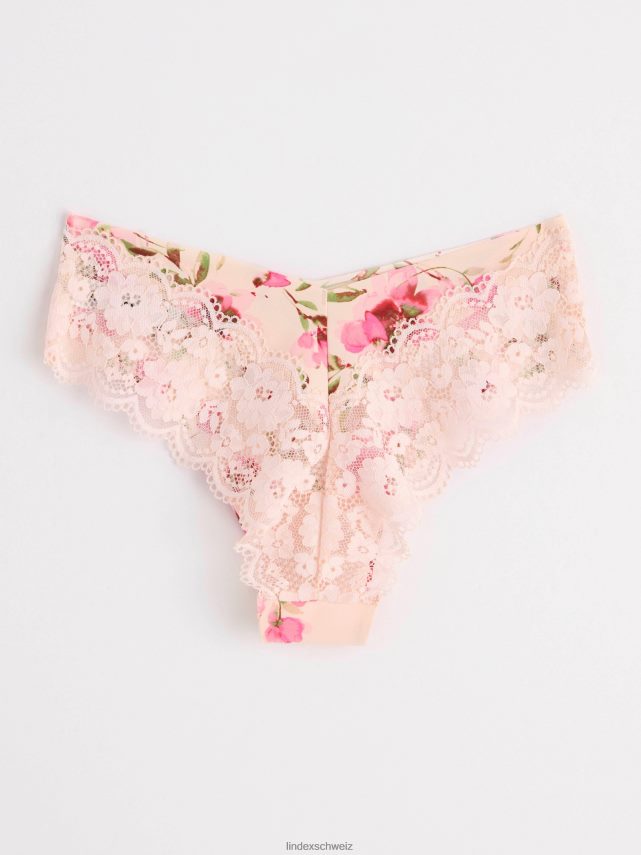 culotte brésilienne taille classique confortable avec un motif floral intégral et des détails en dentelle dans le dos.