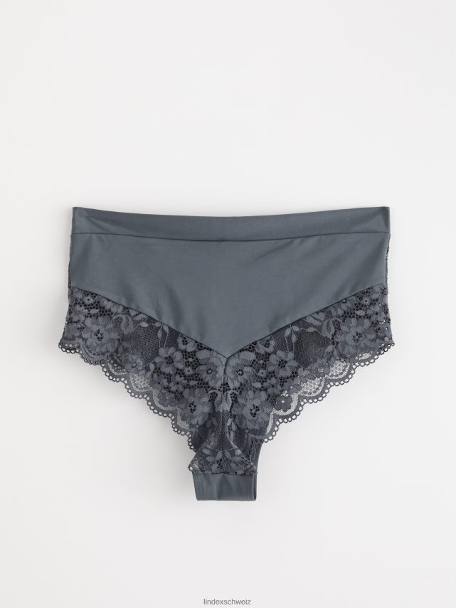 culotte brésilienne à taille haute confectionnée dans une matière douce et brillante et en dentelle transparente avec bords festonnés. choisissez vos préférées parmi les différentes couleurs.