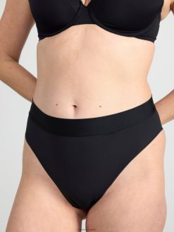 une culotte brésilienne à taille haute. ils sont dotés d’une bordure brillante autour de la taille et de bords découpés au laser, les rendant invisibles sous vos vêtements.
