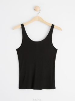 débardeur côtelé avec patte de boutonnage noir Lindex vêtements femmes D44L8F298
