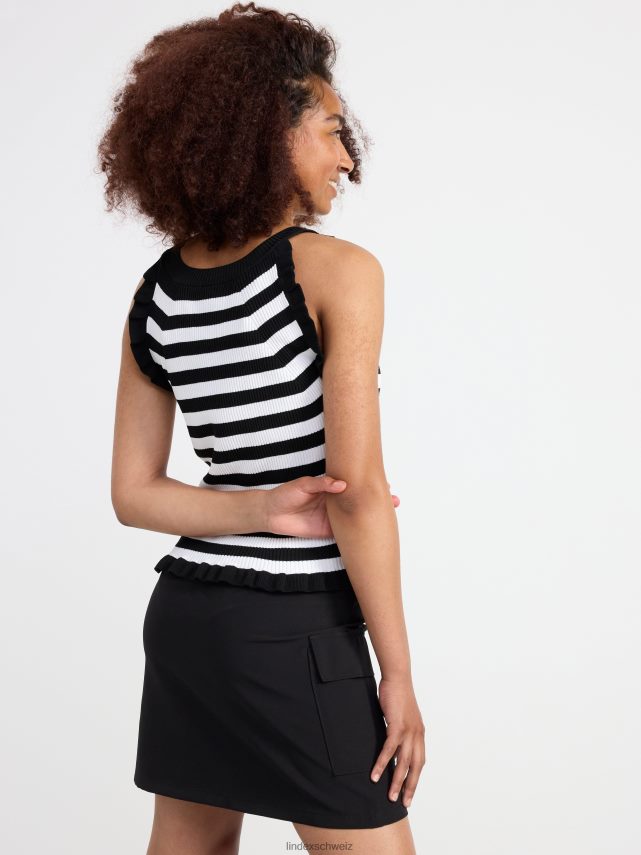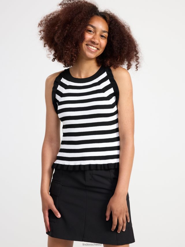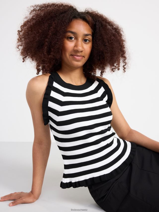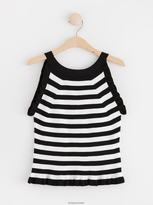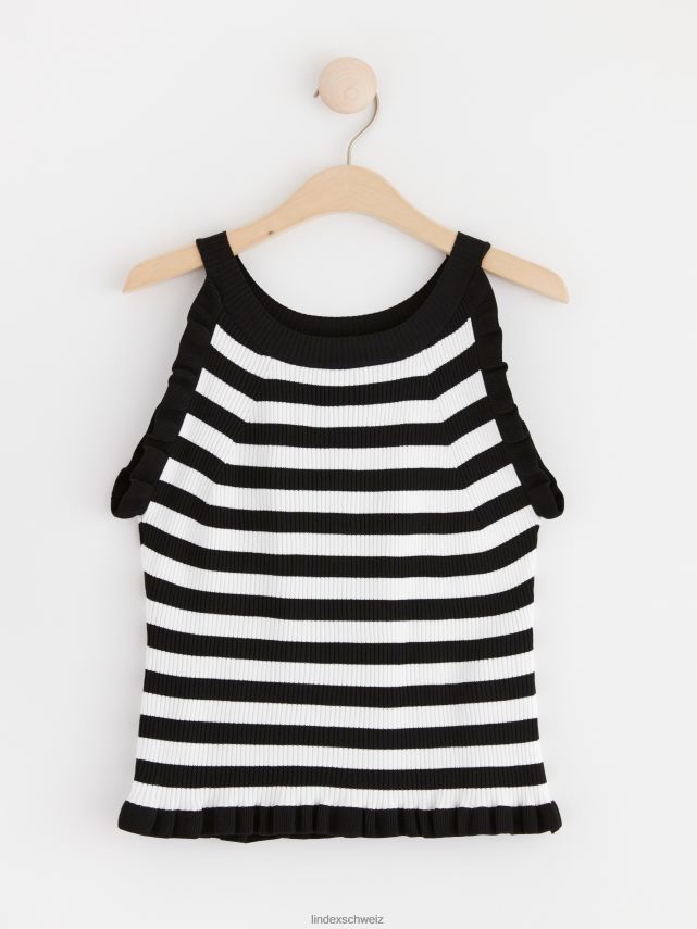 un débardeur rayé en tricot côtelé avec une encolure ronde et une bordure volantée aux ouvertures des manches et à l’ourlet du bas.