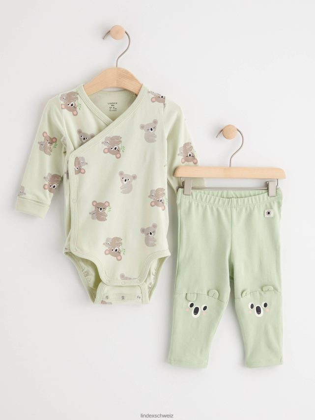 un ensemble doux et confortable comprenant un body à manches longues au design cache-cœur avec un imprimé koala intégral. s’associe à un legging avec imprimé jusqu’aux genoux et oreilles cousues. Grâce à notre solution astucieuse de taille étendue, avec des poignets à manches longues et deux rangées de boutons poussoirs à l’entrejambe, le bébé peut grandir d’une taille tout en gardant le même vêtement. matériel. c’est une pièce certifiée Gots. il est fabriqué à partir de coton biologique et chaque étape de la production a été certifiée de manière indépendante pour garantir qu’elle respecte les exigences sociales et environnementales de gots (norme mondiale des textiles biologiques).