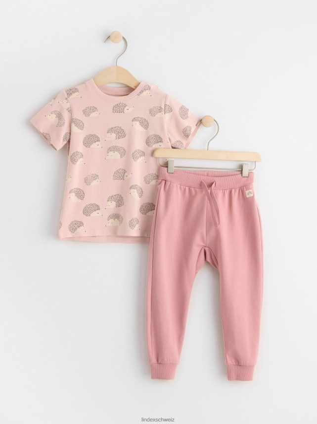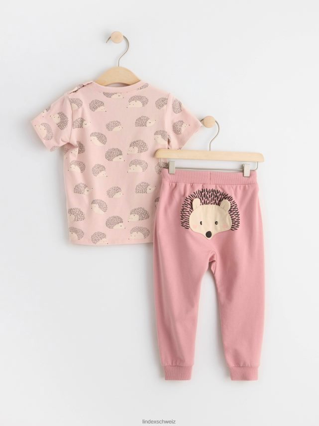 ensemble avec haut à manches courtes et pantalon rose clair Lindex vêtements bébé D44L8F4122