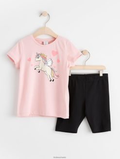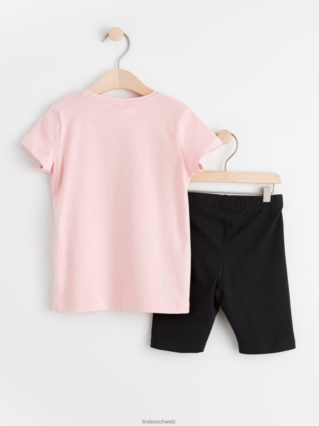 ensemble avec haut à manches courtes et short de cyclisme rose poudré clair Lindex vêtements enfants D44L8F2927