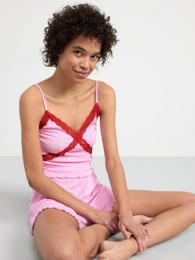 ensemble côtelé avec caraco et short rose clair Lindex vêtements femmes D44L8F2150