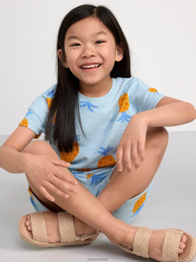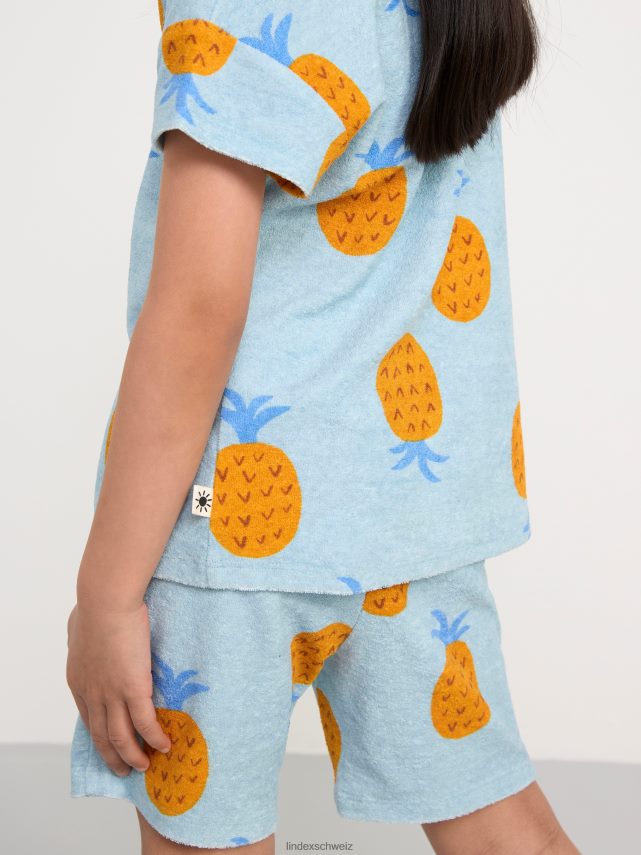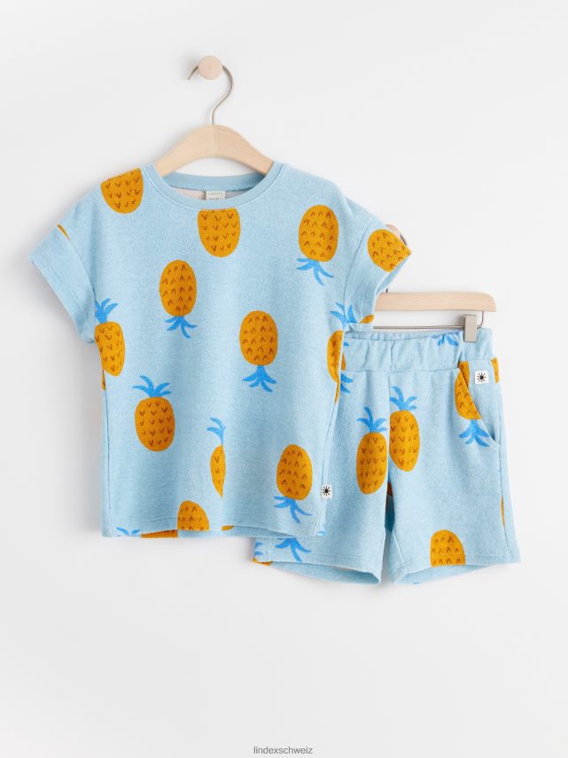 un ensemble en coton éponge doux comprenant un haut à manches courtes et un short assorti, tous deux ornés d’un imprimé ananas intégral. matériel. c’est une pièce certifiée Gots. il est fabriqué à partir de coton biologique et chaque étape de la production a été certifiée de manière indépendante pour garantir qu’elle respecte les exigences sociales et environnementales de Gots (norme mondiale des textiles biologiques).