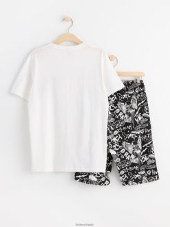 un ensemble pyjama confortable comprenant un t-shirt et un short assorti. matériel. cette pièce est partiellement réalisée en coton biologique. le coton biologique est cultivé sans produits chimiques toxiques ni graines de coton génétiquement modifiées. la culture préserve la biodiversité, les écosystèmes et les personnes en utilisant des processus naturels plutôt que des intrants artificiels.