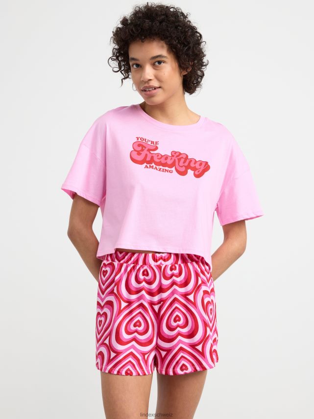 édition en ligne. un ensemble de pyjama doux et confortable comprenant un t-shirt avec un imprimé sur le devant et un short assorti avec un motif cœur intégral. matériel. c’est une pièce certifiée Gots. il est fabriqué à partir de coton biologique et chaque étape de la production a été certifiée de manière indépendante pour garantir qu’elle respecte les exigences sociales et environnementales de Gots (norme mondiale des textiles biologiques).