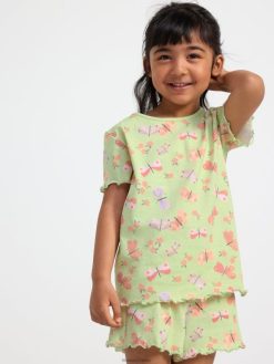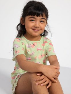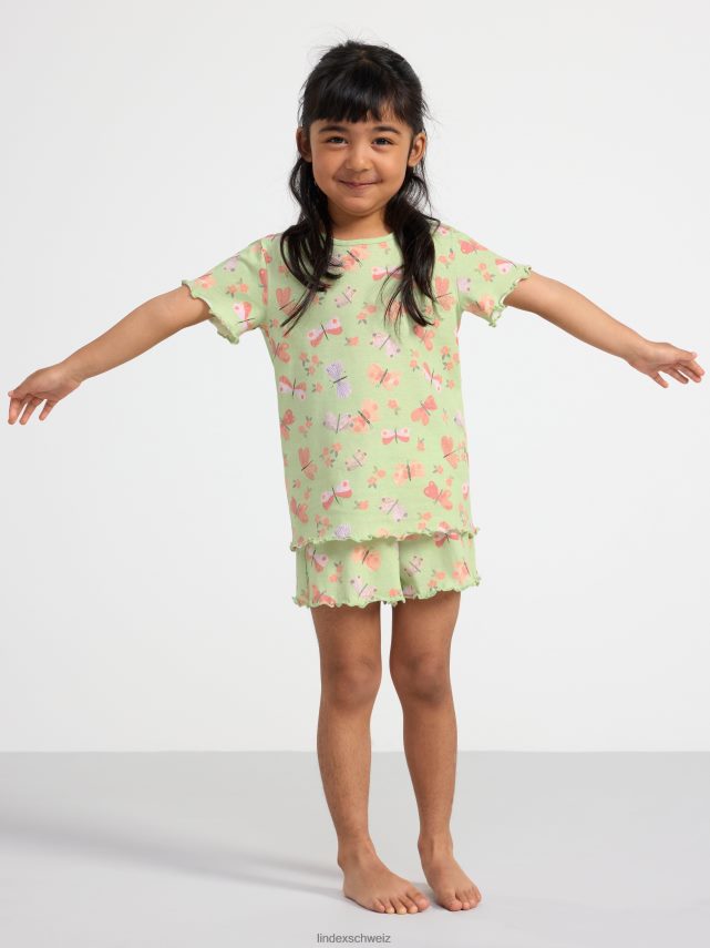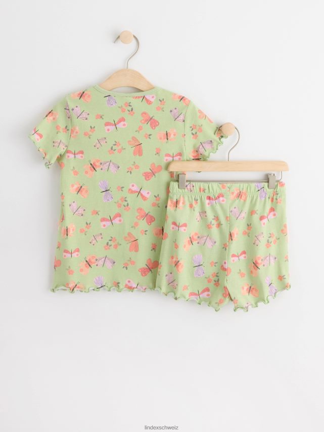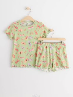 ensemble pyjama avec t-shirt et short vert légèrement poussiéreux Lindex vêtements enfants D44L8F3507