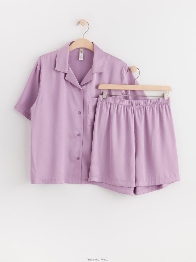 un ensemble de pyjama doux et élégant comprenant une chemise à manches courtes et un short assorti, tous deux en satin de qualité. matériel. cette pièce est fabriquée à partir de polyester recyclé. Lorsque l’on utilise du polyester recyclé, cela signifie que des matériaux qui ont déjà été produits, comme les bouteilles en PET, ont une autre chance. il est beaucoup plus économe en ressources que la production de nouveaux matériaux, ce qui le rend meilleur pour l’environnement et réduit l’impact climatique.
