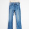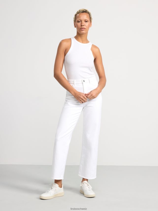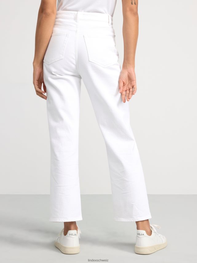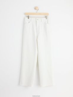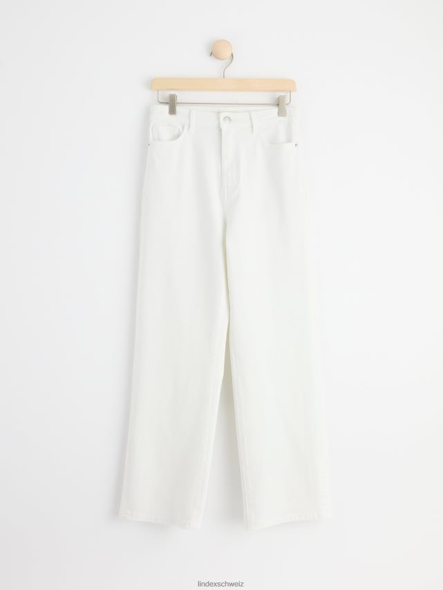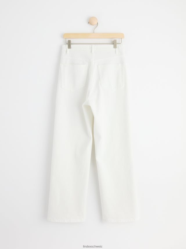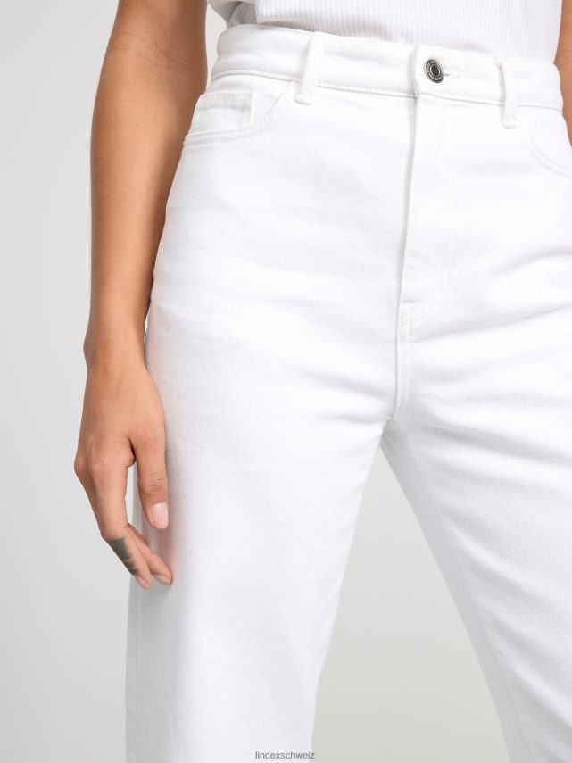 une paire de jeans blancs taille haute avec des jambes larges et courtes dans notre coupe Hanna.