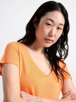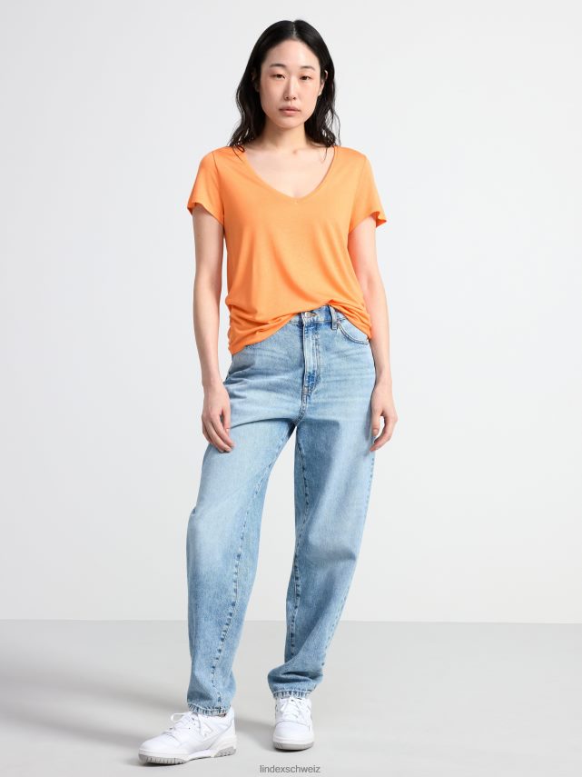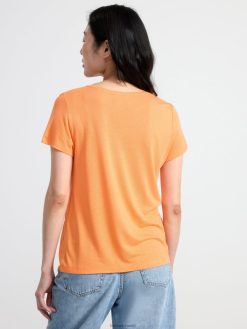 un haut basique et doux à manches courtes avec un col en V. matériel. cette pièce est basée sur oncemore , une nouvelle matière première innovante en fibre de viscose, où des textiles recyclés sont combinés avec du bois issu de forêts gérées de manière responsable. Oncemore est un matériau de haute qualité et est produit avec un impact moindre sur l’environnement par rapport aux matières premières en fibre de viscose conventionnelles.