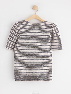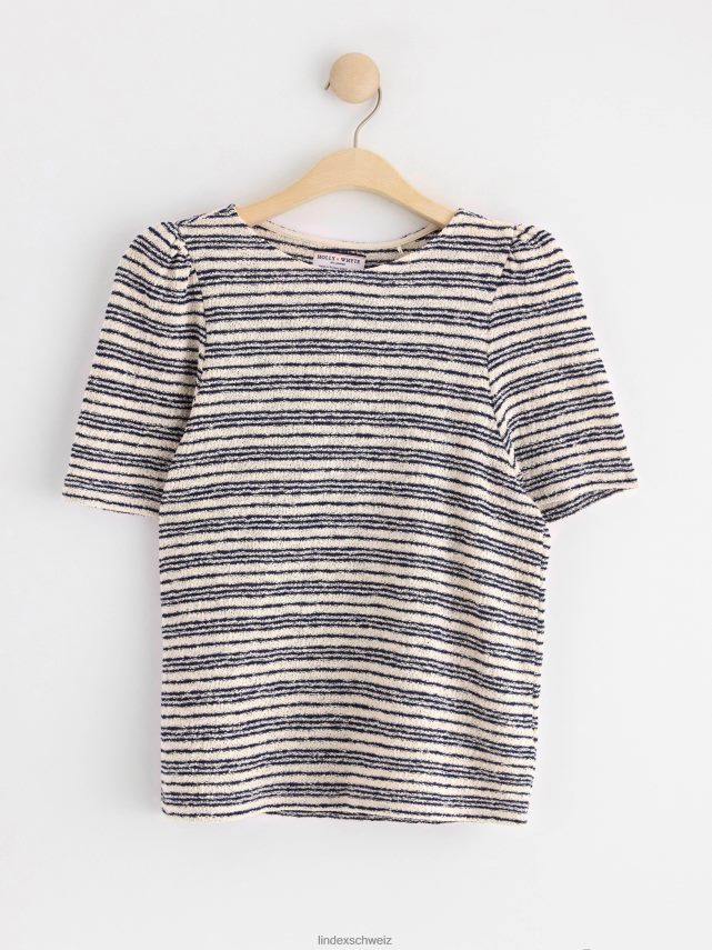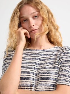 un haut élégant avec des manches courtes bouffantes dans une texture façon tricot avec des rayures.